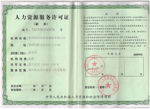 | 徐州市利民勞務(wù)服務(wù)有限公司 |